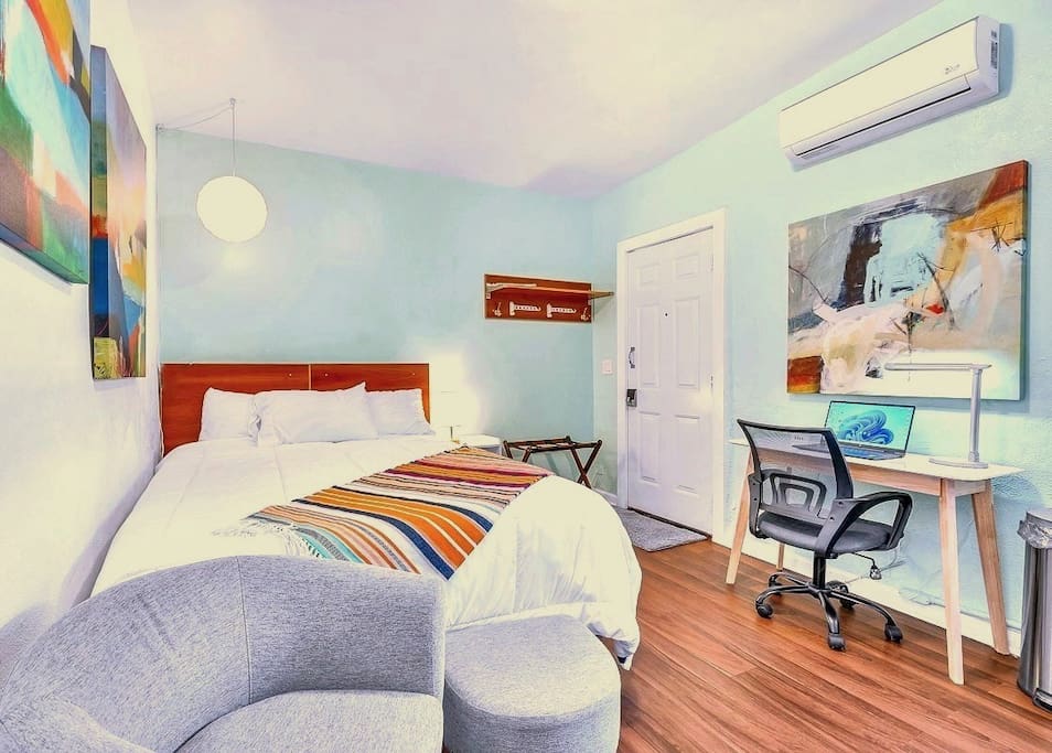 π‘ Casa PequeΓ±a β Detached Studio π Comfy queen bed π³ Kitchenette & bathroom ποΈ 55" Smart TV + dedicated workspace π Fast internet β‘ π Driveway parking & private entry πΎ Small well-mannered pets welcome π Near Downtown, UTEP, Sun Bowl, trolley line, hospitals & restaurants ποΈ Quiet central neighborhood with schools & families β¨ Ideal for solo travelers, couples, or one parent & child